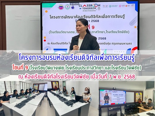 อบรมโครงการห้องเรียนดิจิทัลเพื่อการเรียนรู้ โซนที่ 9 (โรงเรียนวัดบางเตย , โรงเรียนประภาสวิทยา และโรงเรียนวัดพิชัย ) ณ ห้องเรียนดิจิทัล โรงเรียนวัดพิชัย เมื่อวันที่ 7 พ.ย.2568