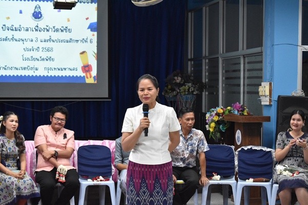 โรงเรียนวัดพิชัย โดย นางสาวเตียงคำ เตโช ผู้อำนวยการสถานศึกษา ดำเนินกิจกรรมปัจฉิมอำลาเฟื่องฟ้าวัดพิชัยนักเรียนชั้นอนุบาลปีที่ 3 และชั้นปรถมศึกษาปีที่ 6 ปีการศึกษา 2568 เพื่อแสดงความยินดีในความสำเร็จ ส่งกำลังใจให้นักเรียนที่กำลังจบการศึกษา สร้างสายใยความผูกพันระหว่างครูและนักเรียน พร้อมทั้งให้โอวาทเพื่อเป็นแนวทางในการศึกษาต่อหรือใช้ชีวิตในอนาคต ณ ห้องประชุมโรงเรียนวัดพิชัย เมื่อวันที่ 6 มีนาคม 2569 |