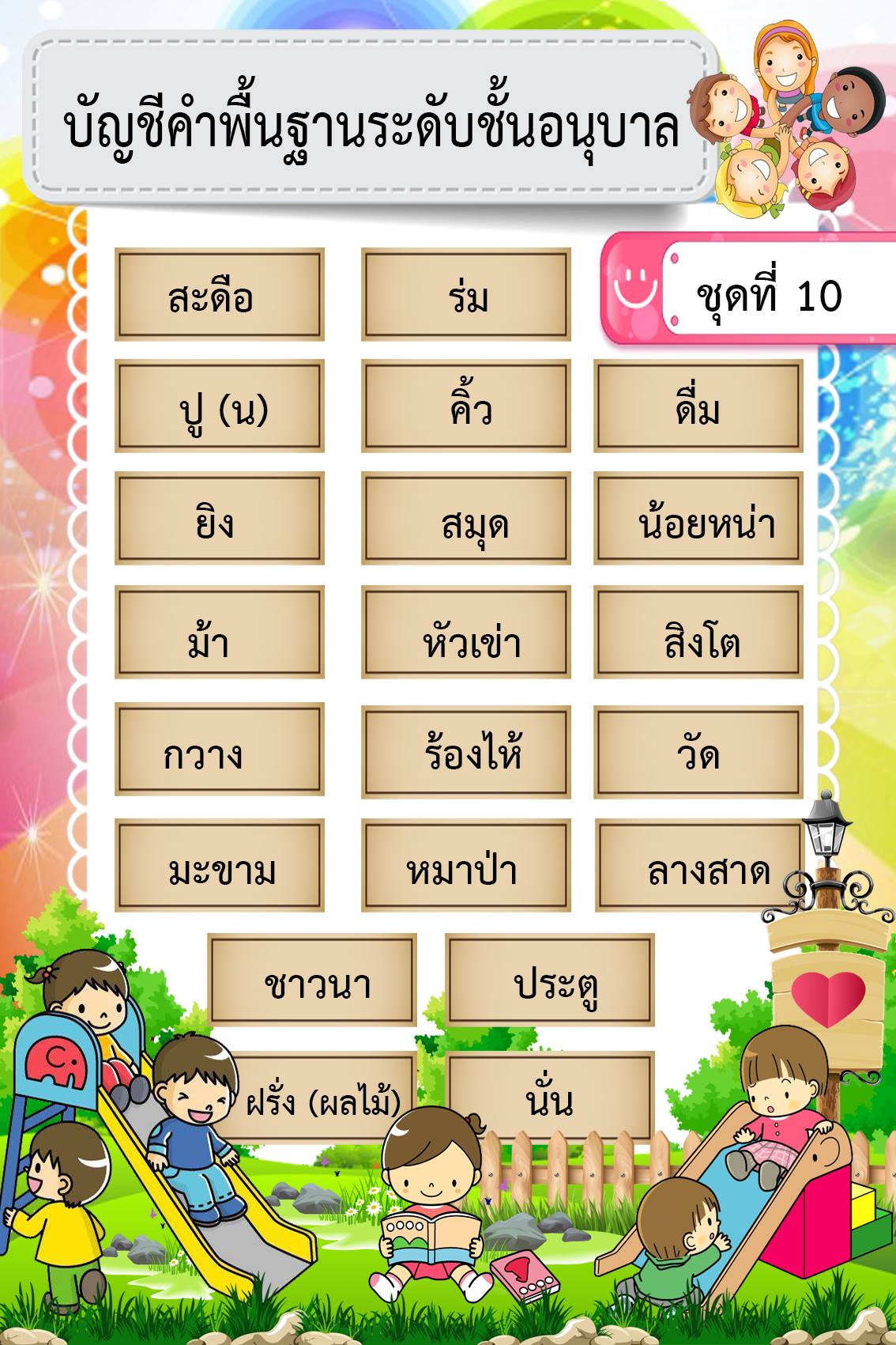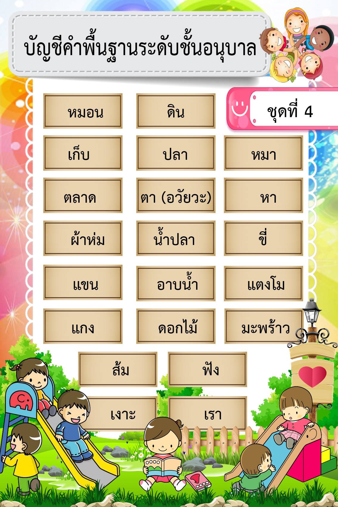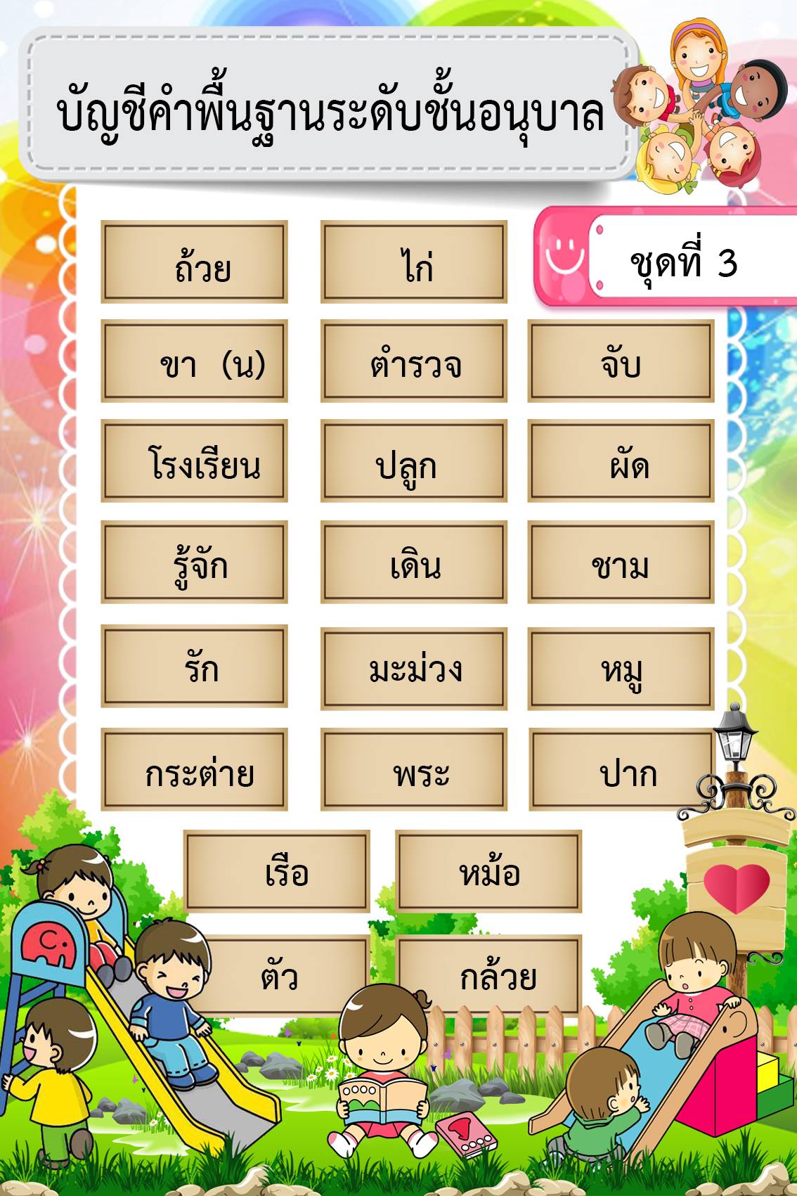 บัญชีคำพื้นฐานอนุบาล (ลายใหม่)